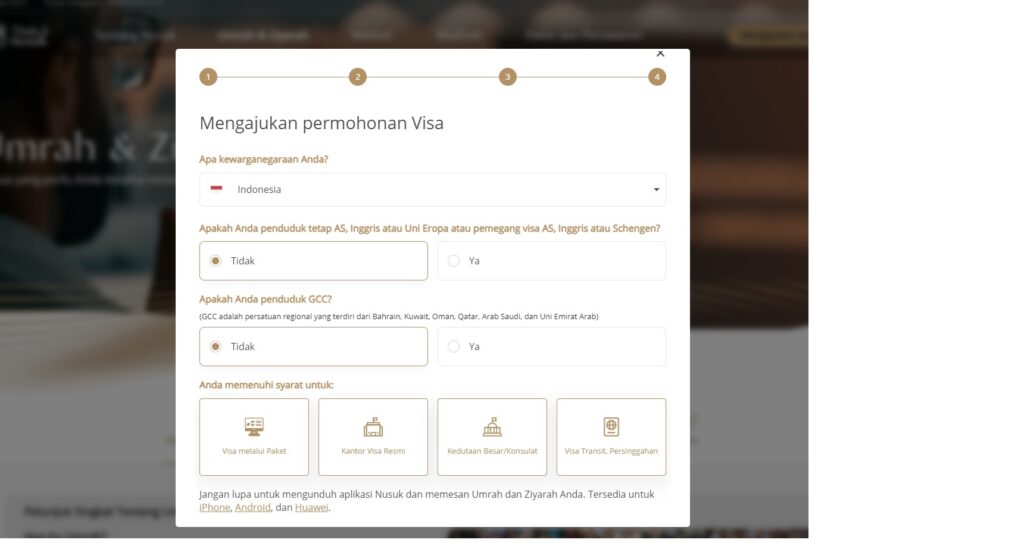 Tampilan pengajuan visa melalui aplikasi Nusuk